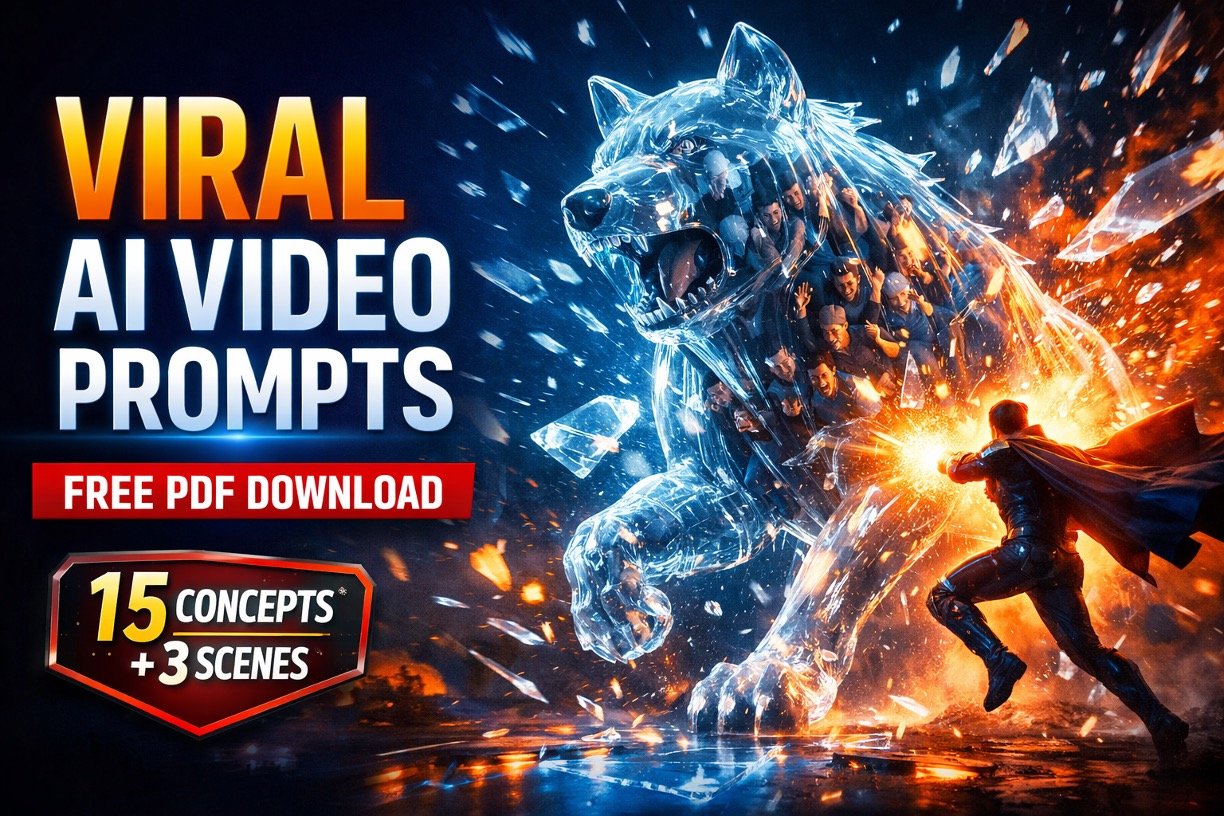 Create scroll-stopping AI short videos with this free master prompt pack. This PDF gives you a powerful concept-generation prompt plus a cinematic 3-scene video prompt system designed for viral rescue-style animations featuring giant transparent glass animals, trapped captives, and dramatic superhero saves.